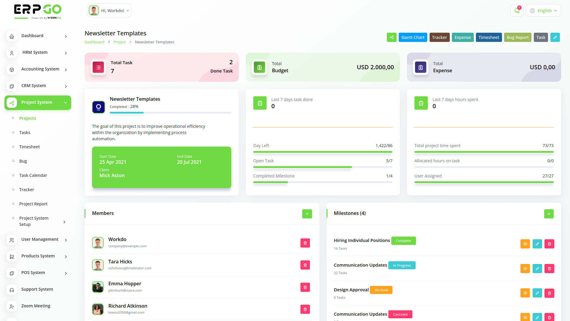 ERPGo SaaS All In One Business ERP With Project, Account, HRM, CRM & POS